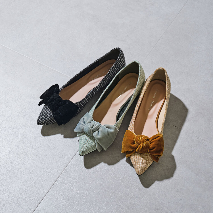 ベロアリボン×ツイードフラットパンプス/51302
