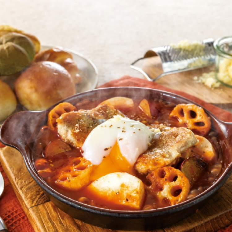 グリルチキンと根菜のトマトビネガー煮 ビスマルク風