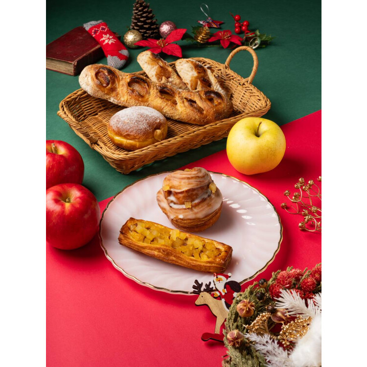 北海道産有機小麦使用のバゲット生地に、りんごを包んで焼き上げた、
