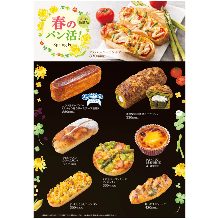 4月の定番人気カラメルチーズバー&濃厚宇治抹茶黒豆デニッシュがラインナップ!
