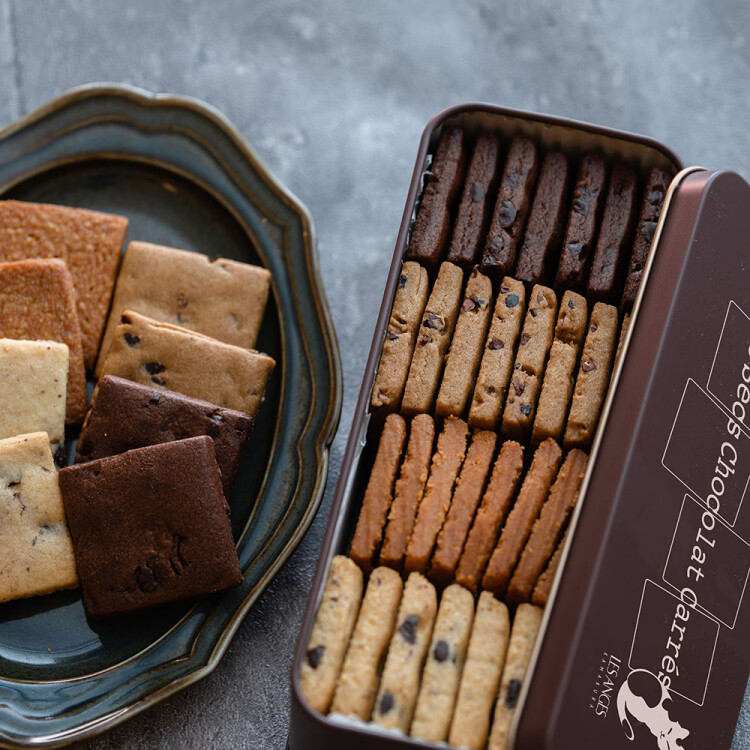 「Fours Secs Chocolat Carrés」、フランス語で「四角いチョコレートの焼菓子」という名の季節限定クッキー缶です。4種類すべてにカカオを活かし、ひと手間加えた特別なクッキーに仕上げています。